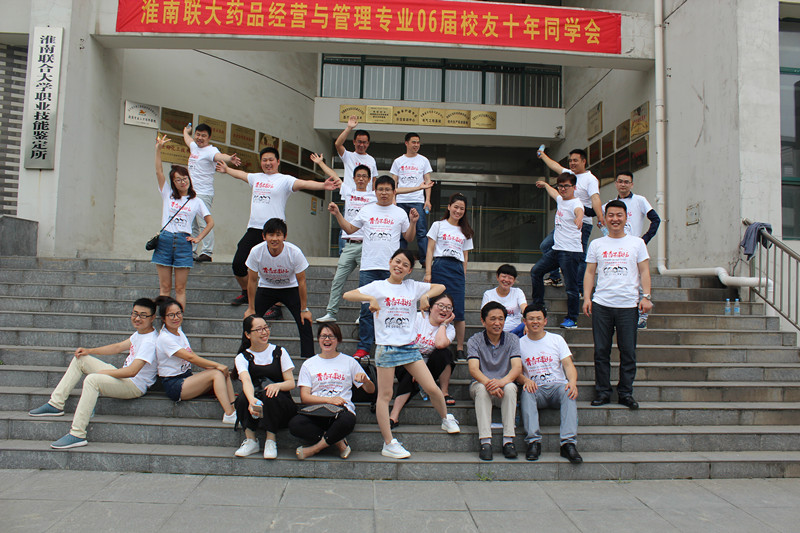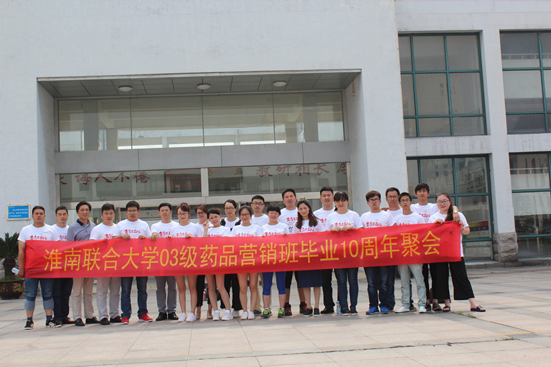 2016.6.10上午03级药品经营与管理专业学生,相约十年,荣归母校----淮南联合大学。校长李辉、副校长白存良、学生处长许二潮、化工系主任宋丽华和班主任、任课教师等与毕业生欢聚一堂。