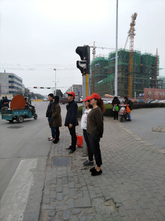 活动中,青年志愿者配戴着志愿者小红帽,在刘老师的带领下按规定时间到达泉山路口参加活动,积极协助交警治理车辆乱闯红灯、逆道行驶、跨隔离栏、横穿马路等交通违规行为,为问路者提供指引服务。