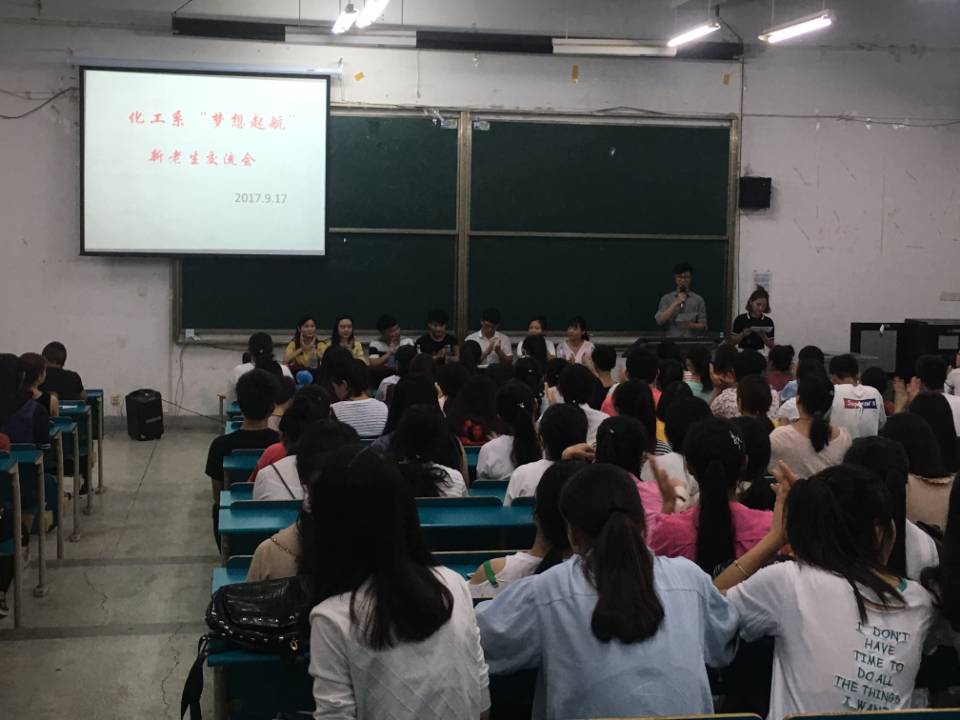 为了使2017级新生尽快熟悉大学生活,找到自己奋斗的目标,也给新老生提供交流学习的平台,9月17日晚,化工系在西教学楼120教室开展了以“梦想•起航”为主题的新老生交流会。系学生会主席、团委副书记、学生会各部门成员、16级部分优秀学生代表和2017级全体新生参加了交流会。