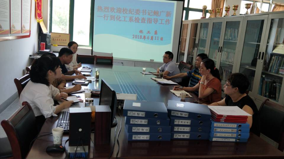 6月12日上午,校纪委书记鲍广新、纪检审计处洪莉处长等一行莅临我系检查指导工作。化工系党总支陈武副书记、郭红彦副主任、党务秘书刘运华出席汇报会。