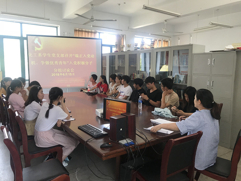 6月15日下午,化工系学生党支部在系会议室开展“端正入党动机、争做优秀青年” 学习讨论会议,会议由学生支部书记主持,入党积极分子参加学习讨论。