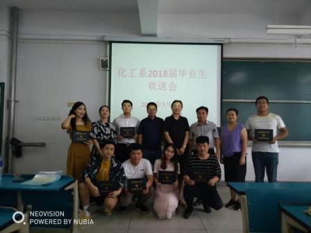 会上,学生会主席周子杰代表全体毕业生发言,从三个层面深情表达了对母校,对老师,对同学的感恩、依恋之情。党务秘书代表班主任给同学们提出了文明离校要求和殷切期望。化工系主任董海丽给同学们做了励志讲话,并给予了美好祝福。系负责人为毕业生代表颁发了毕业证,并合影留念。